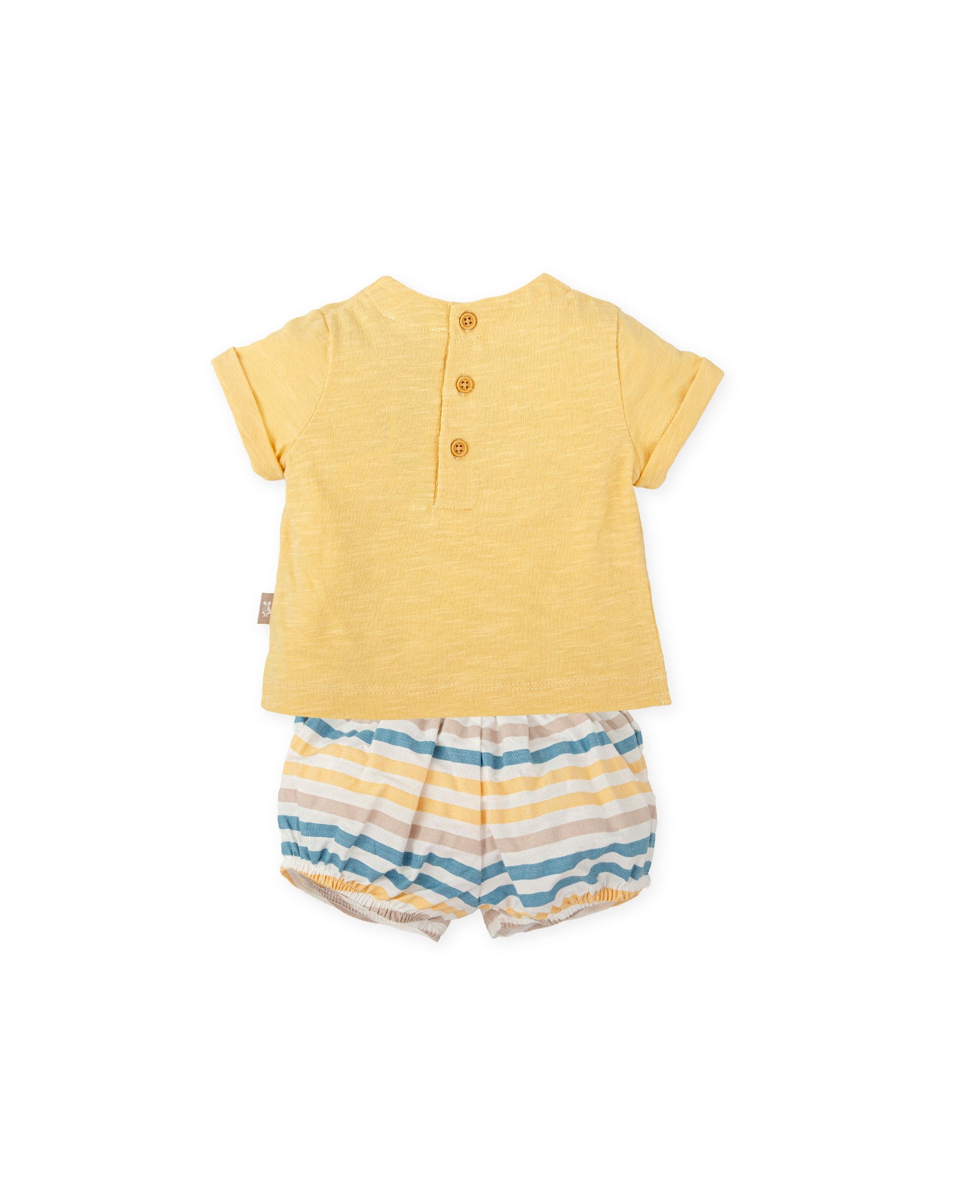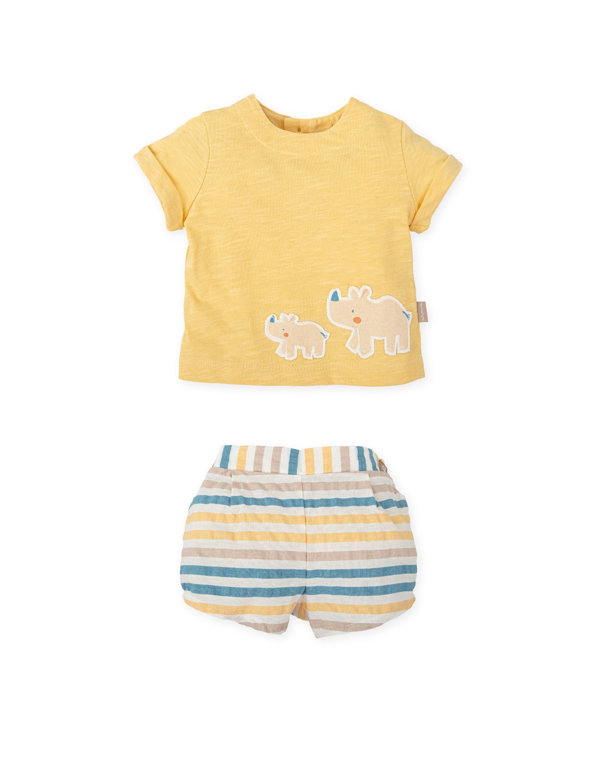 Yellow Baby Boy Outfit | Rhino T-Shirt & Striped Shorts Set | 100% Cotton