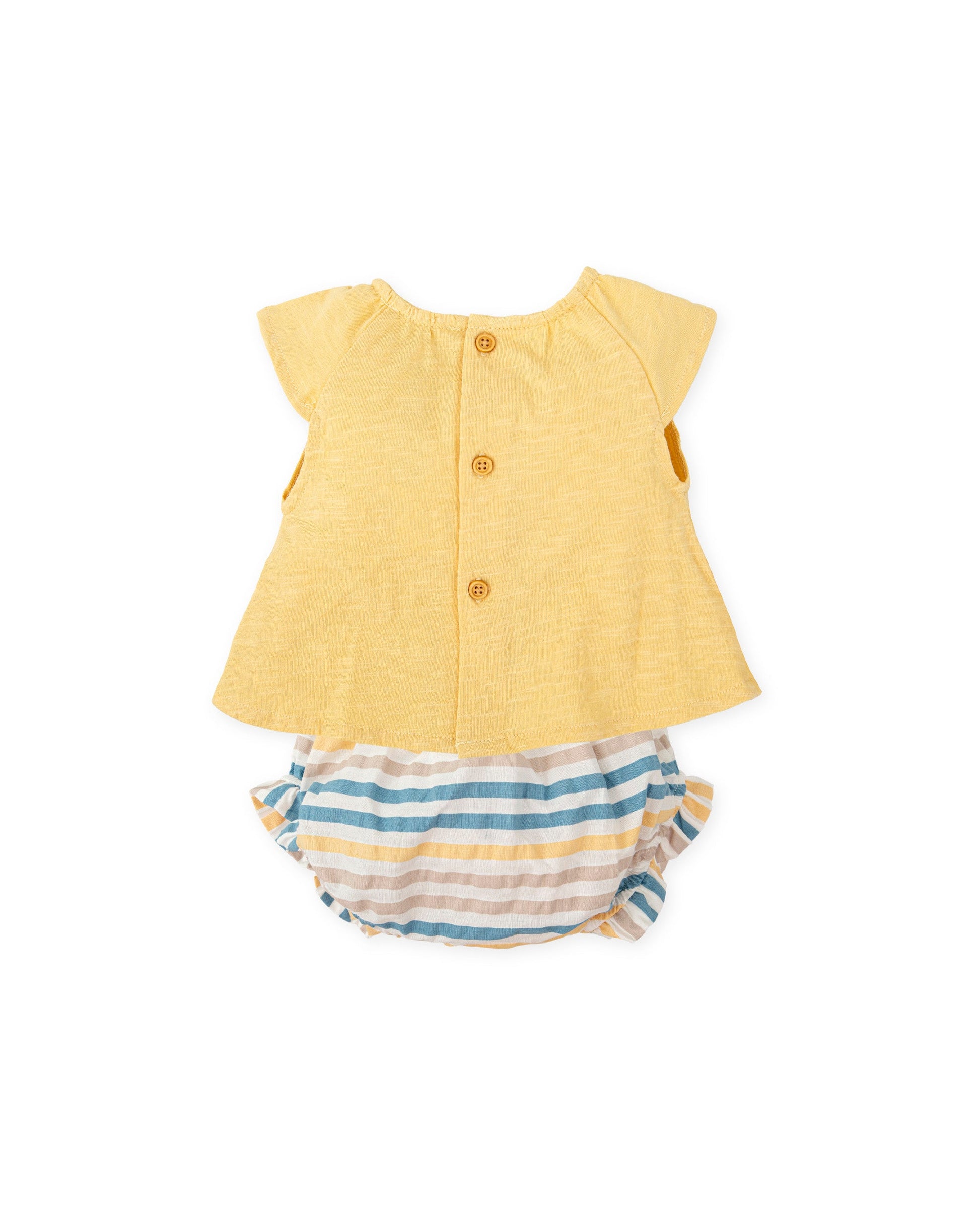 Yellow Baby Outfit Set: Rhino Top & Striped Bloomers - 100% Cotton