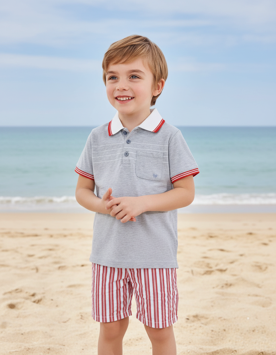 Experience the perfect blend of style and comfort with our 100% cotton Bermuda shorts, featuring vibrant red and blue stripes. Designed with a flexible waistband, these shorts offer both functionality and a timeless look, ideal for any summer occasion from family outings to playground fun.