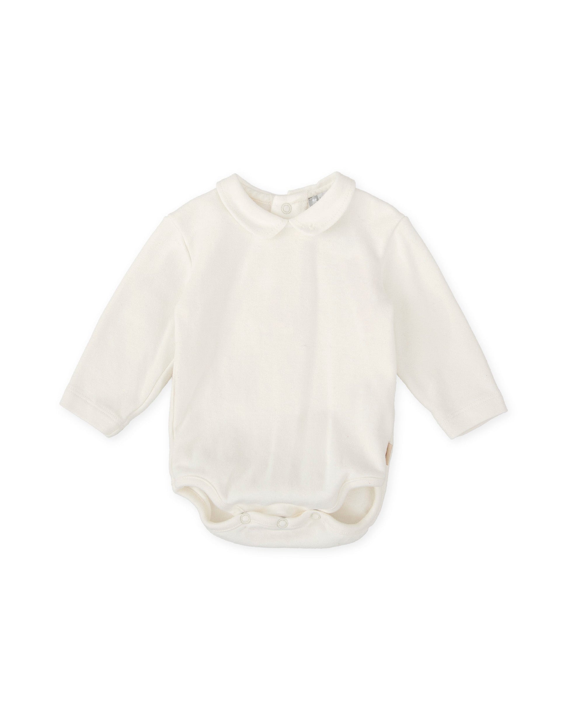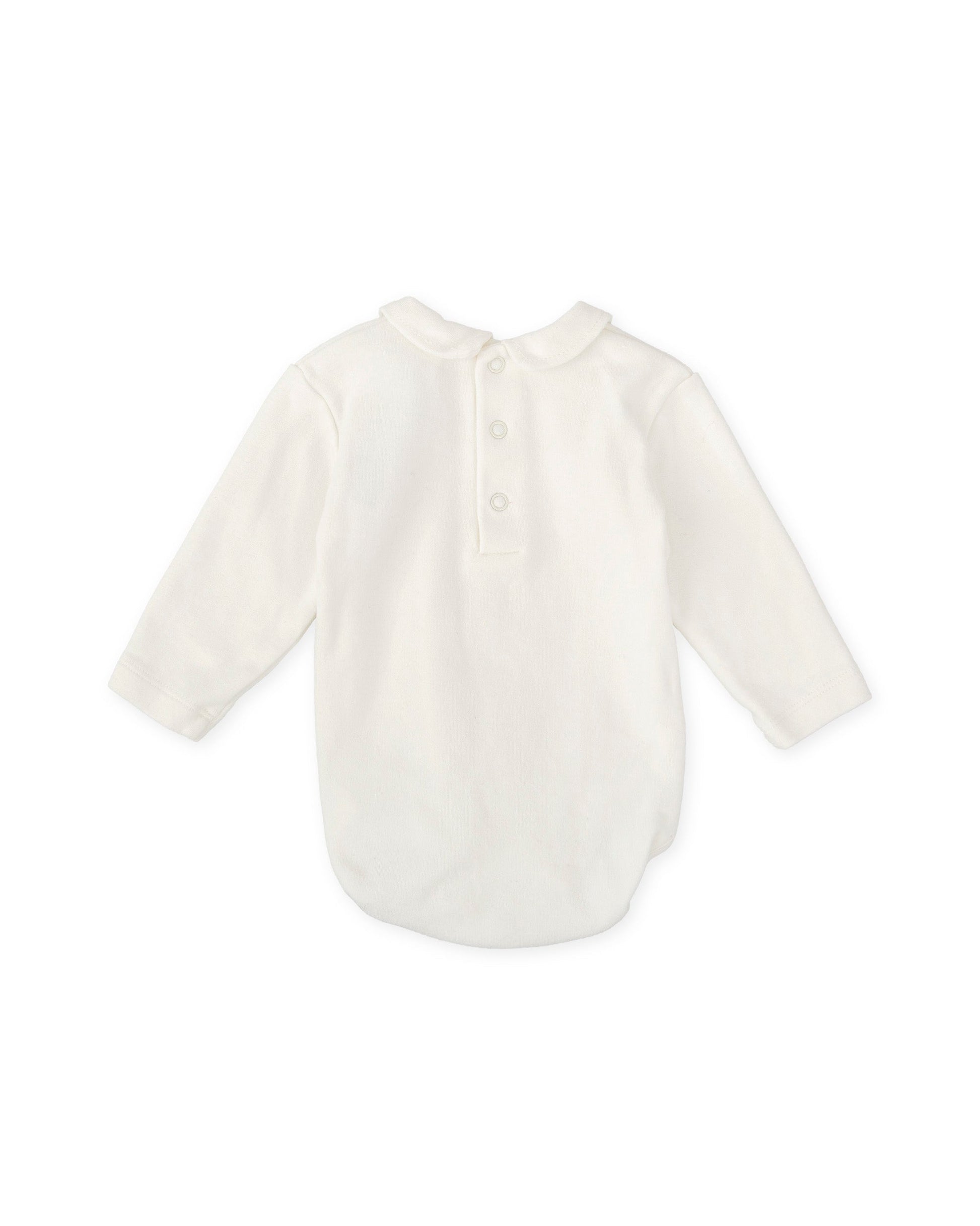 Organic Cotton Long Sleeve Baby Bodysuit with Embroidered Collar