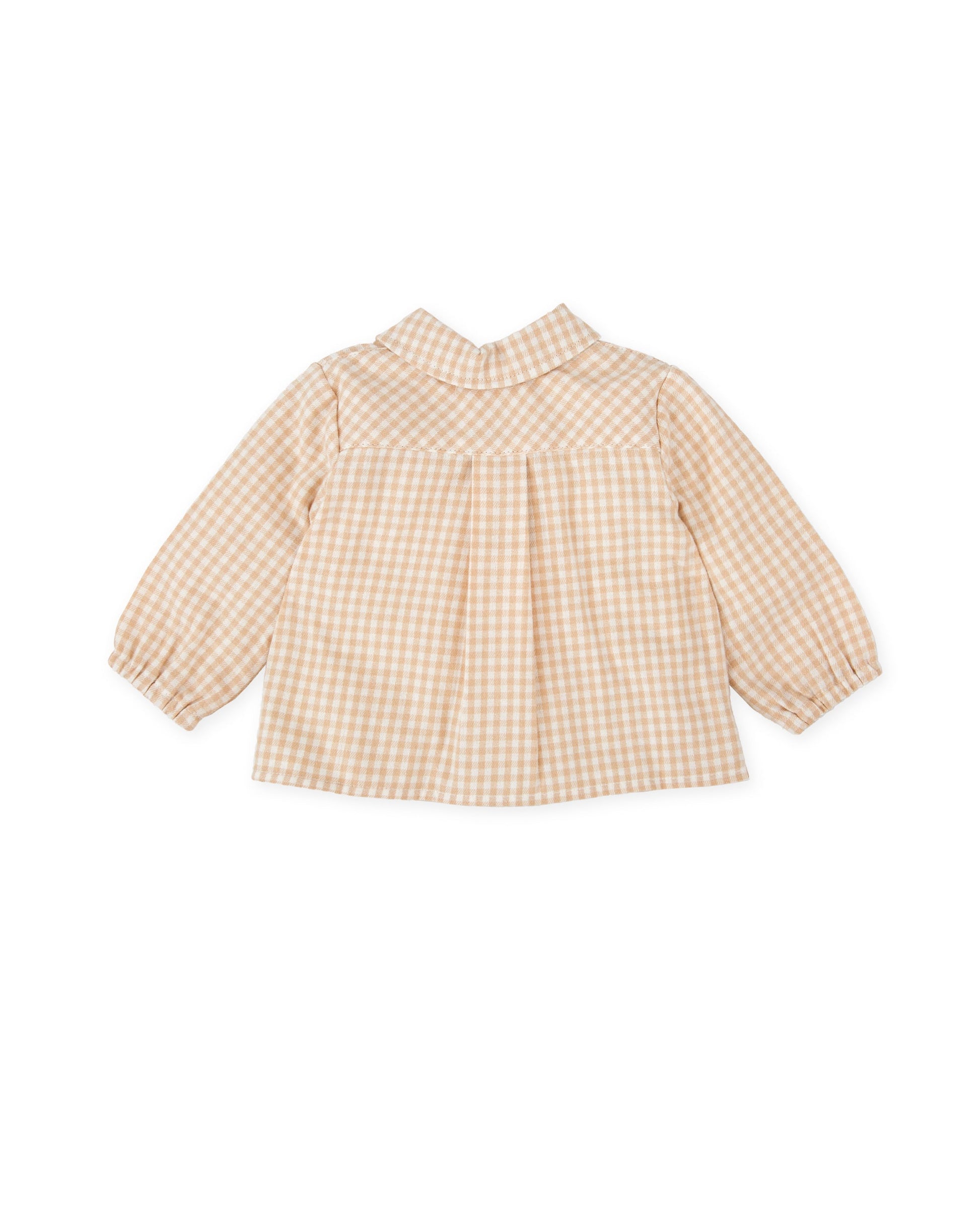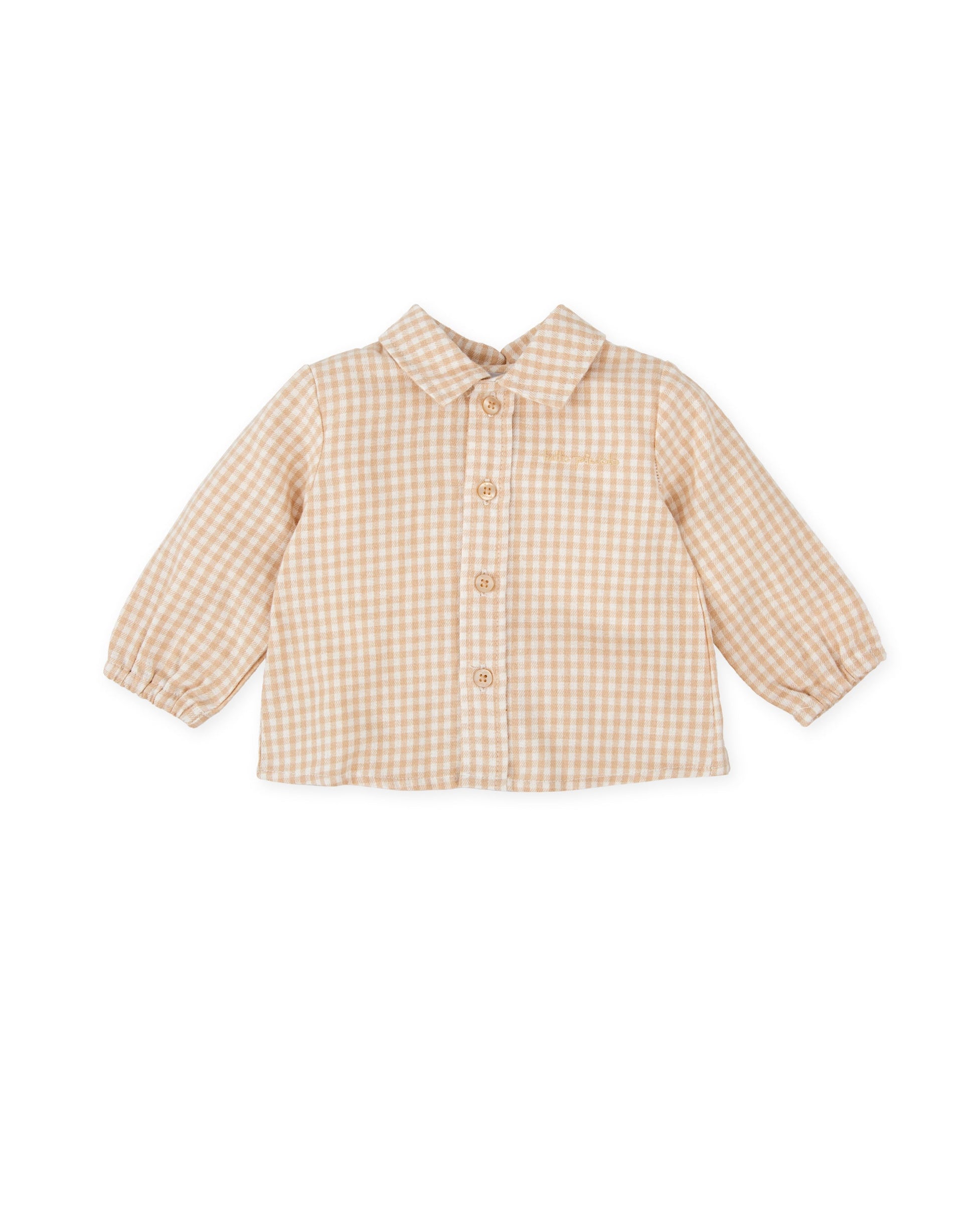 Sand Gingham Baby Shirt - Soft Cotton, Embroidered Detail