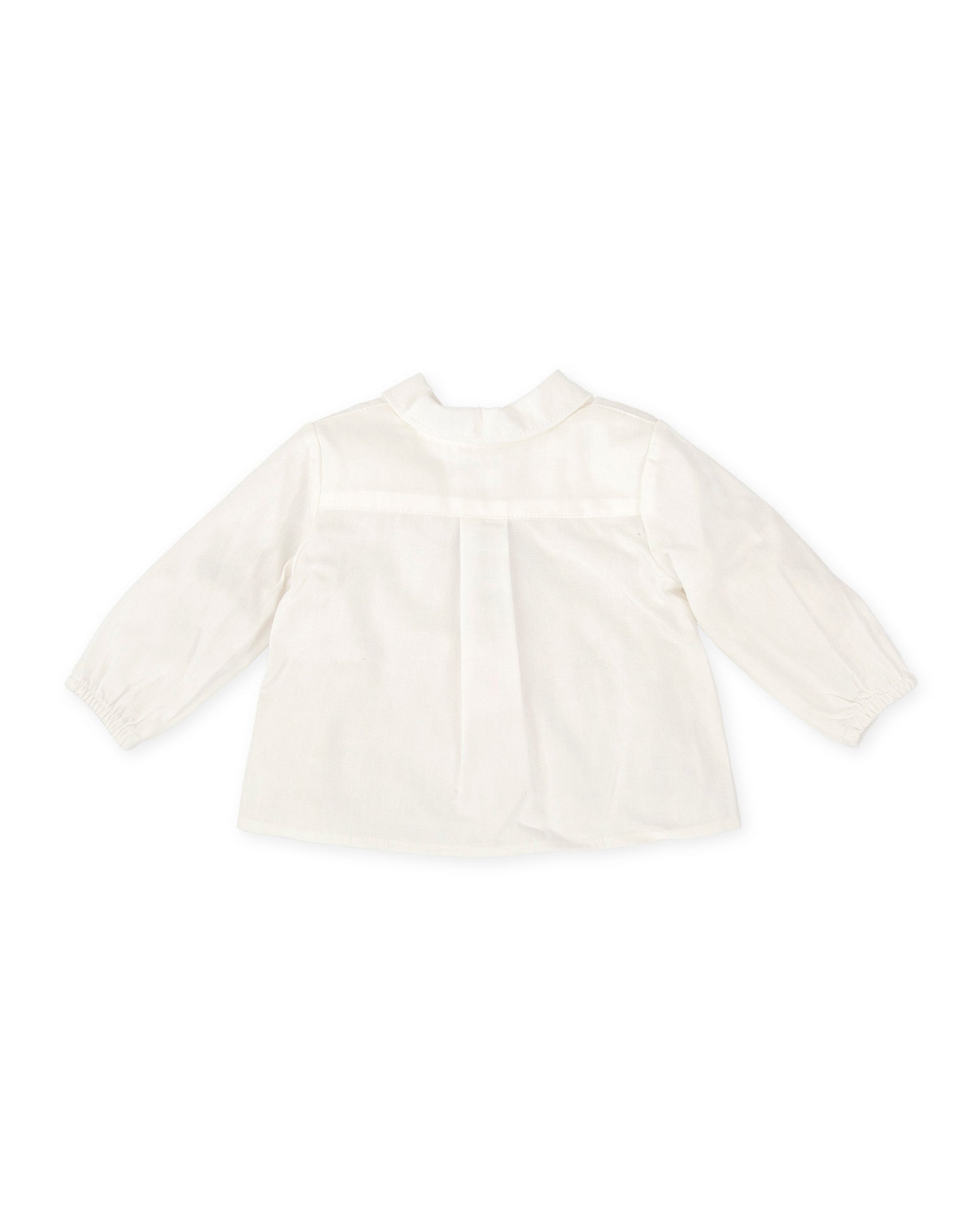 Discover timeless elegance with our Soft White Long-Sleeve Baby Shirt, expertly crafted from a lightweight cotton blend twill for ultimate comfort and style. Perfect for every season, this shirt features a delicate collar, practical front button closure, and gentle elastic cuffs, making it an ideal choice for both daily wear and special occasions.
