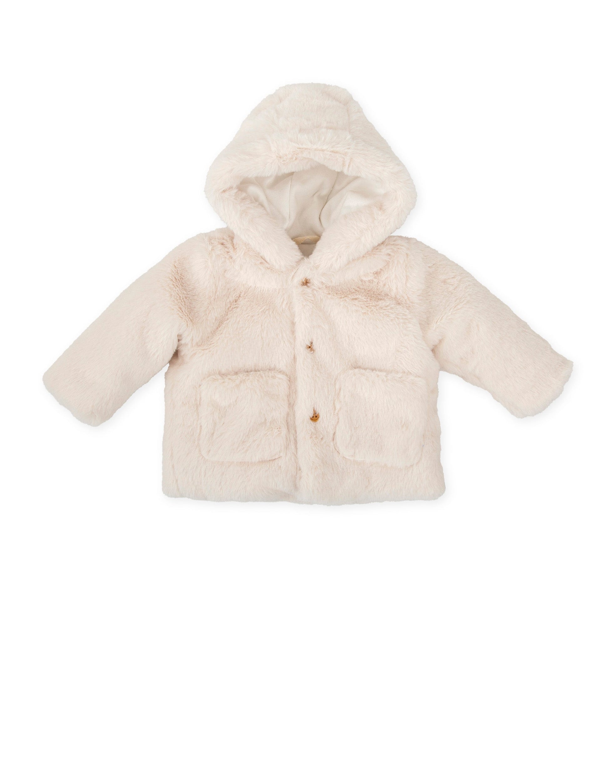 Cozy Cream Faux Fur Baby Coat with Warm Cotton Lining