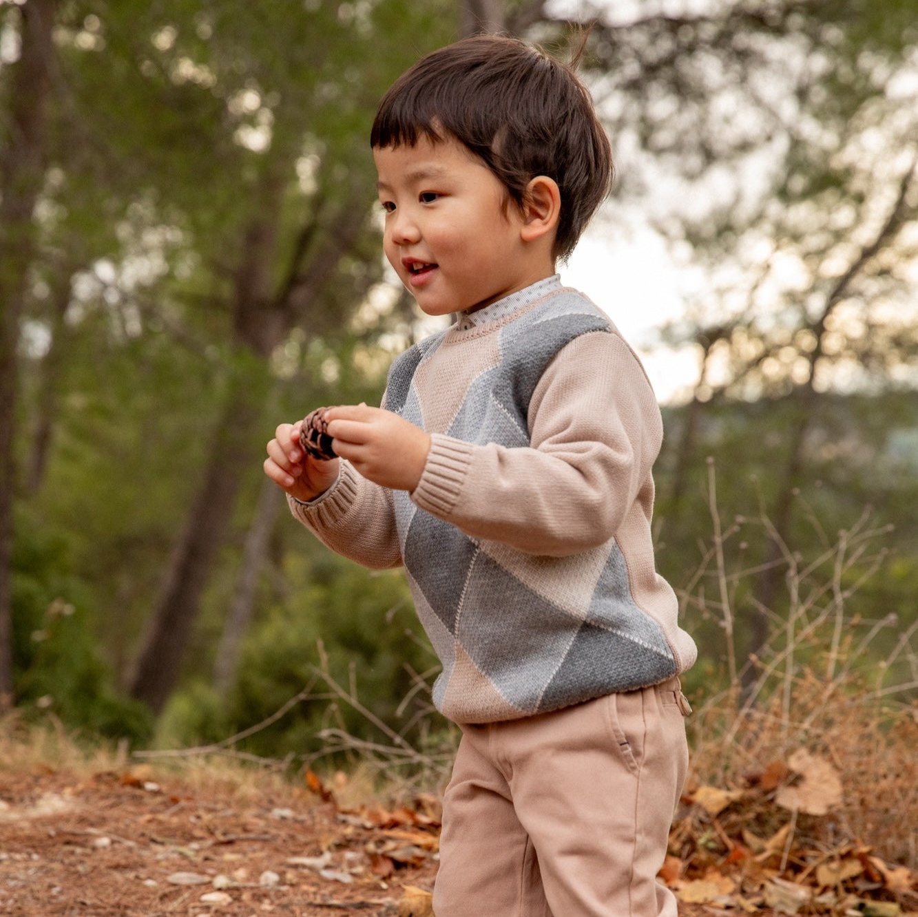 Cozy Kids' Sand Sweater with Diamond Knit Pattern