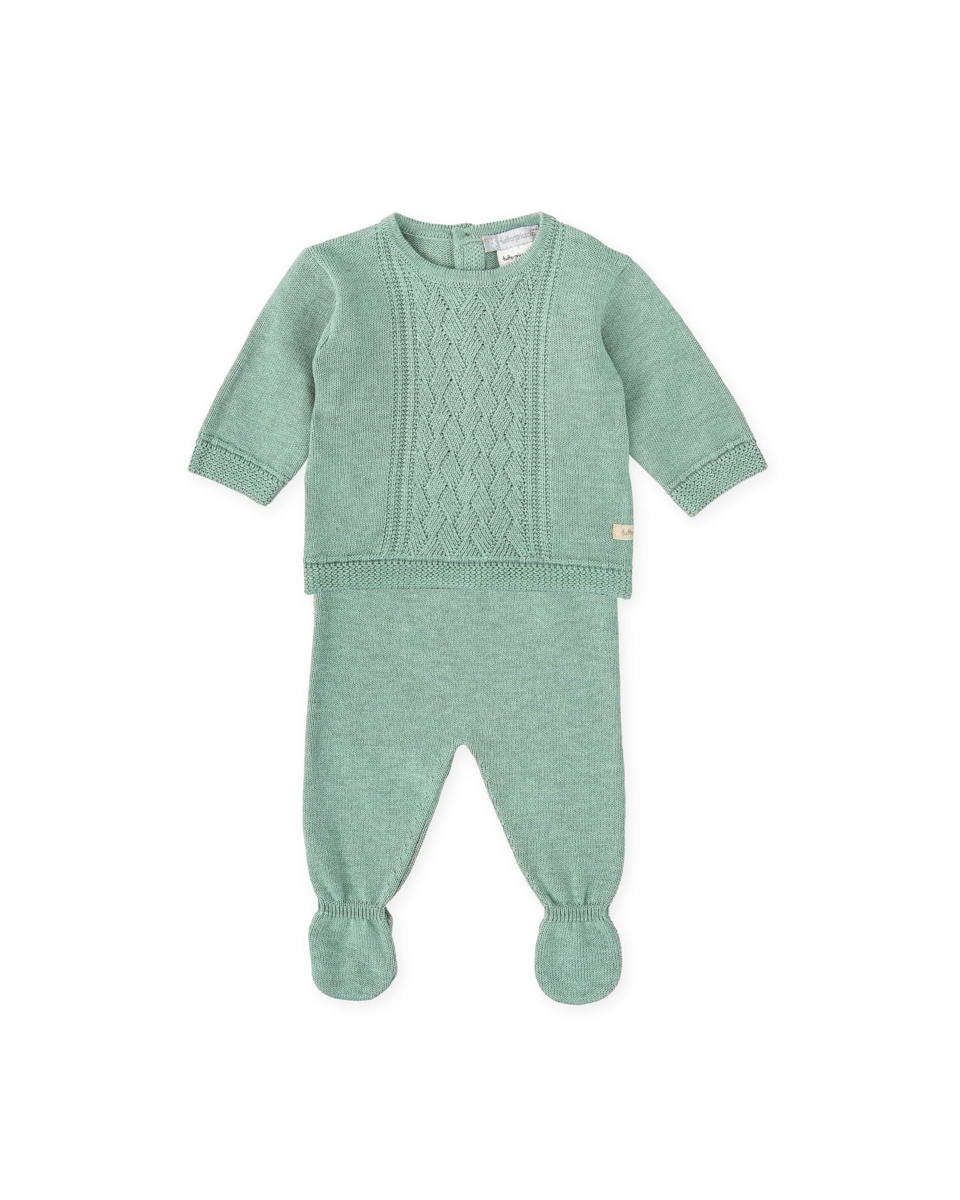 Newborn Two-Piece Knit Set in Sage Green with Footed Leggings