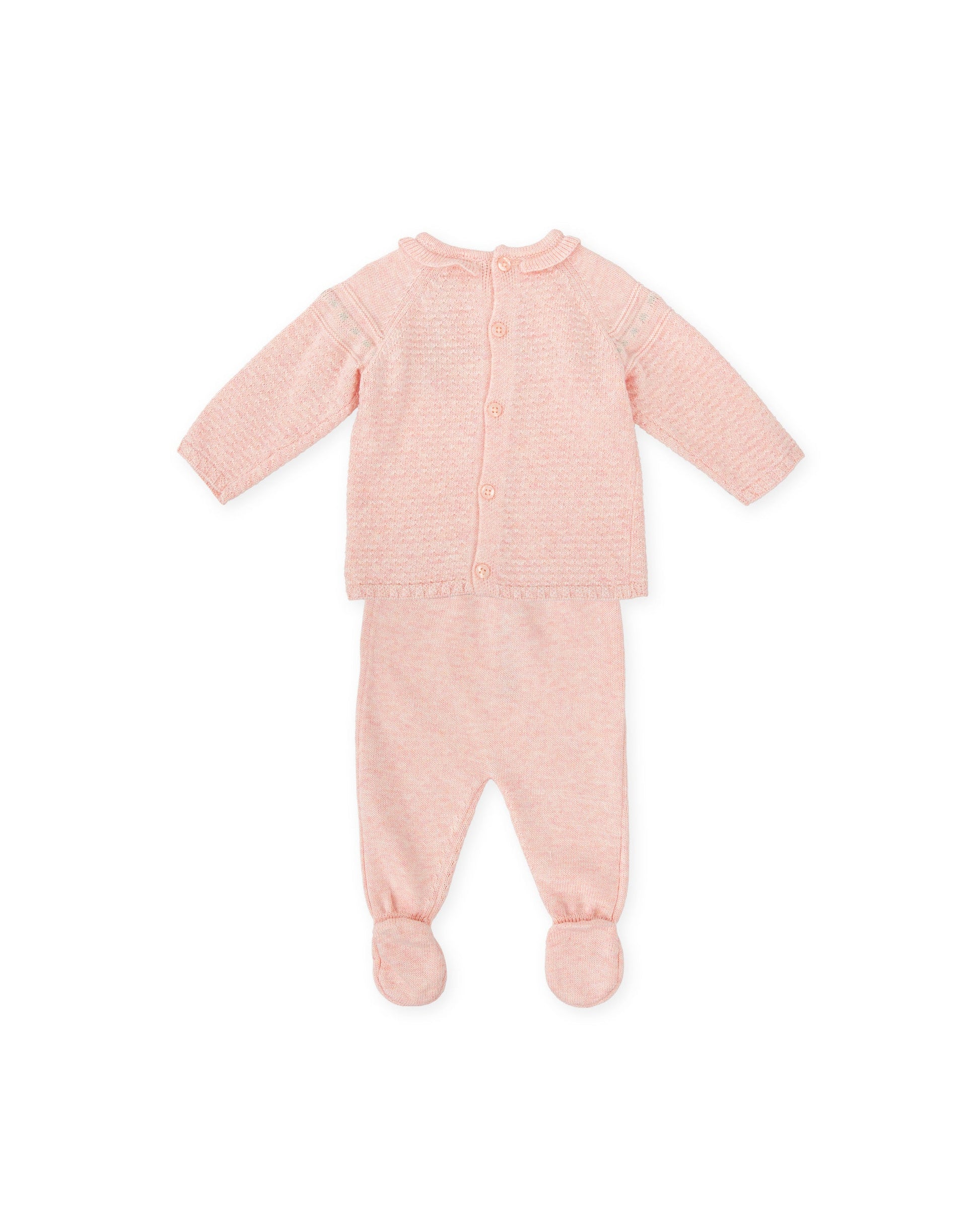 Soft Pink Baby Knit Set with Button Top and Footed Pants