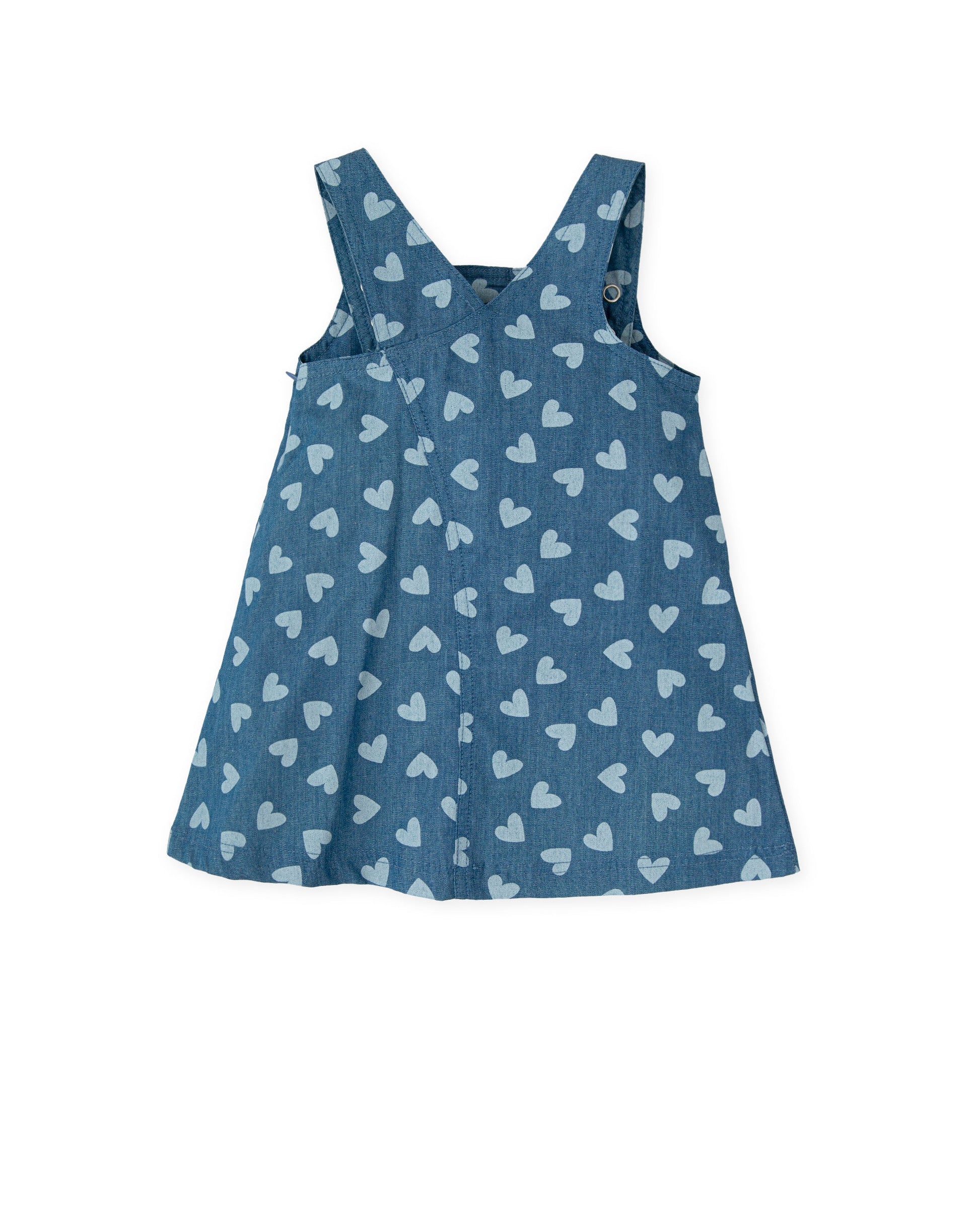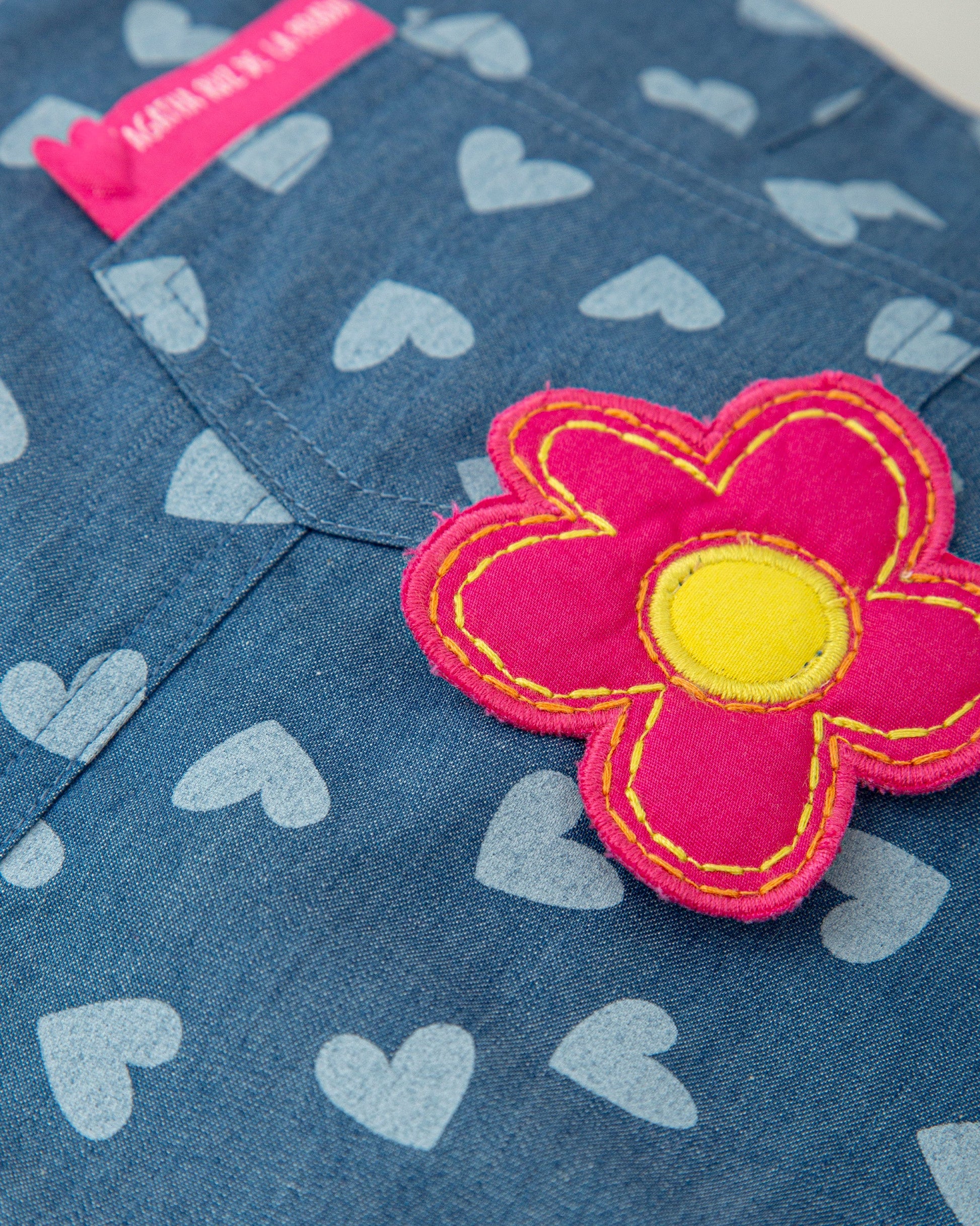 Indigo Chambray Dress with Heart Print & Floral Embroidery