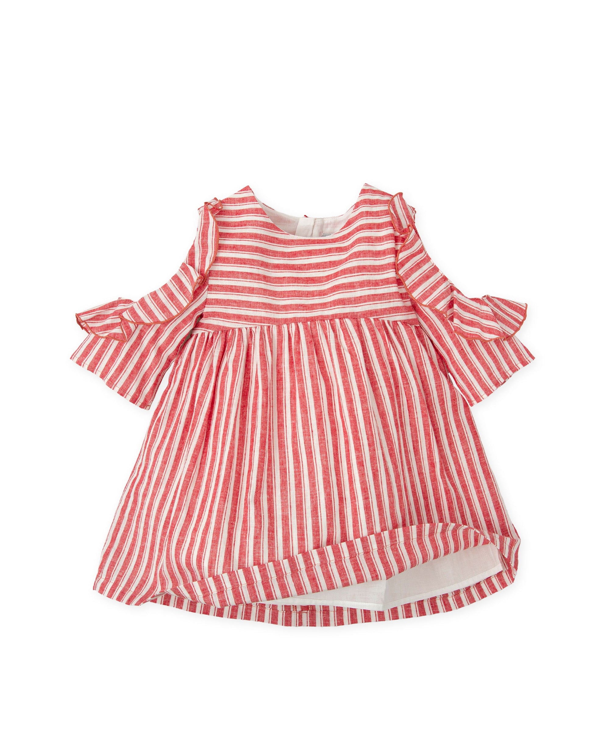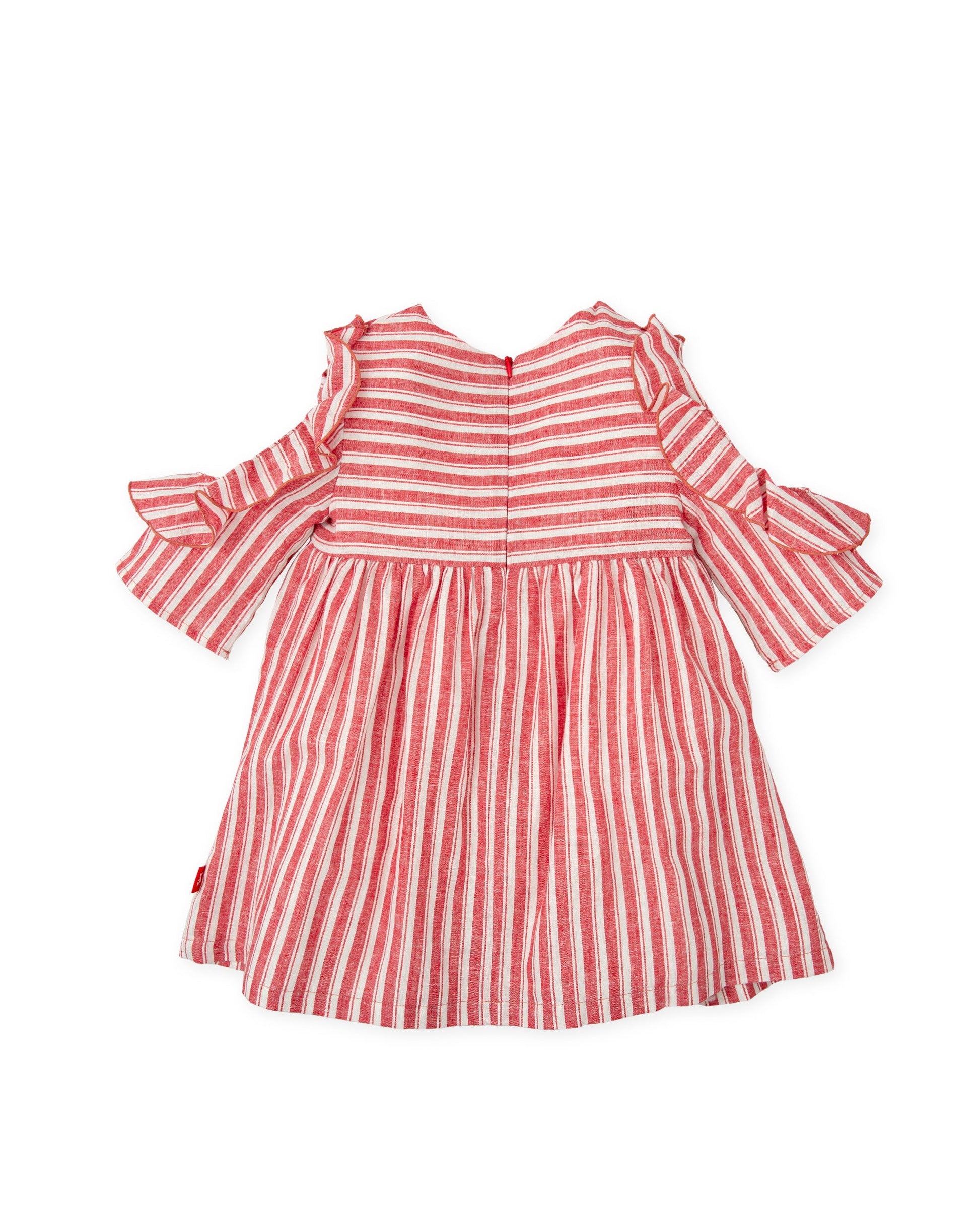 Red Striped Baby Girl Dress | Cold-Shoulder Ruffle Linen-Cotton