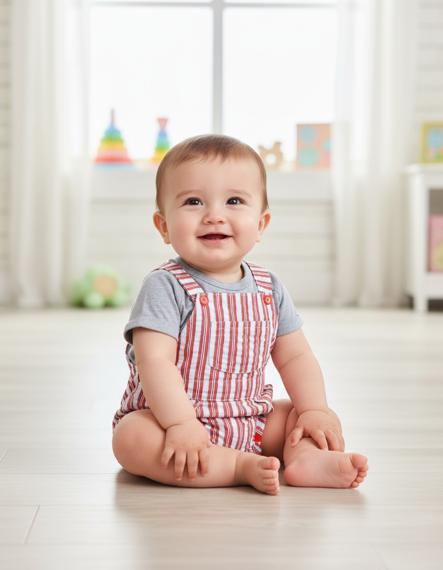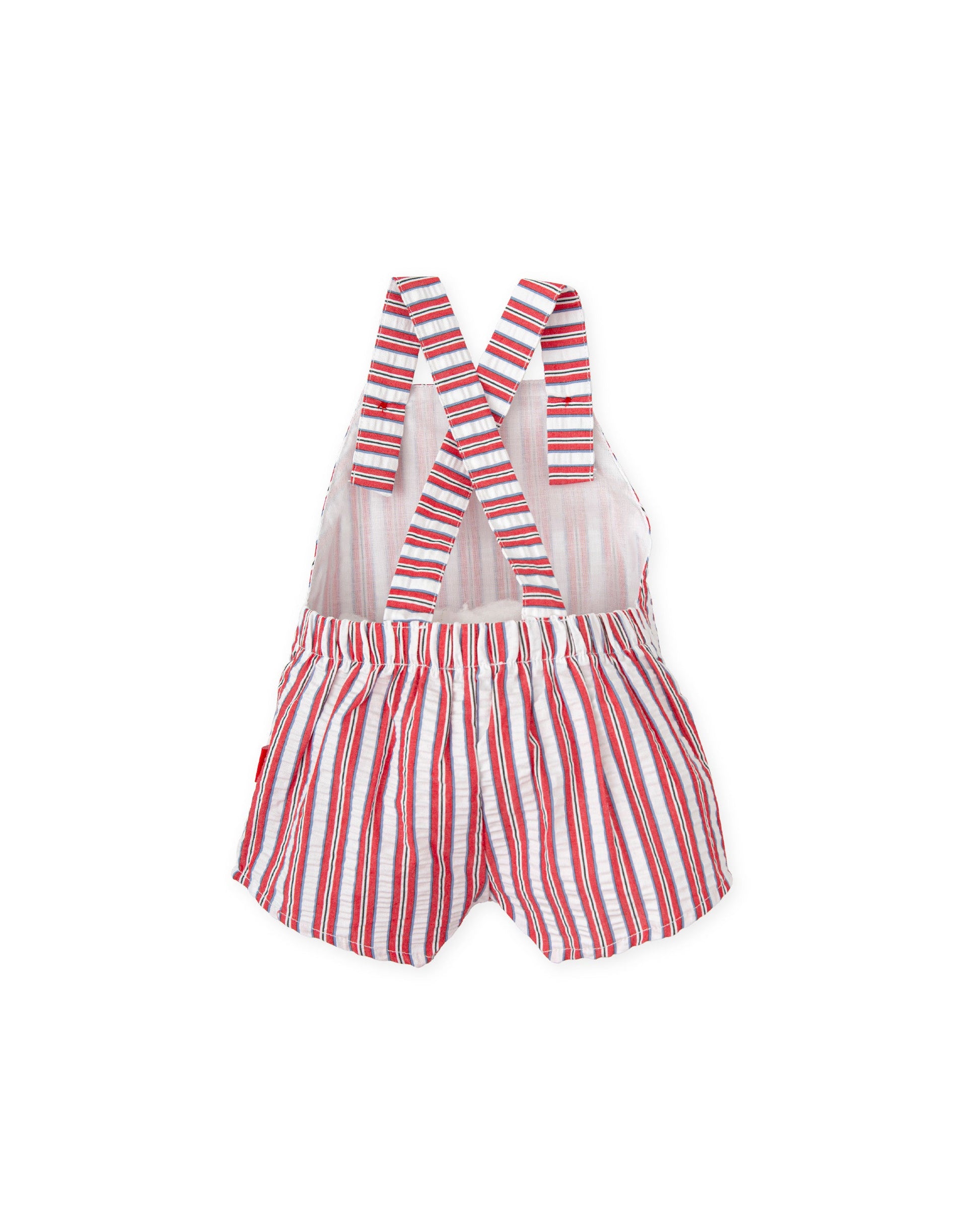 Red & Blue Striped Cotton Baby Romper | Summer Dungaree Outfit