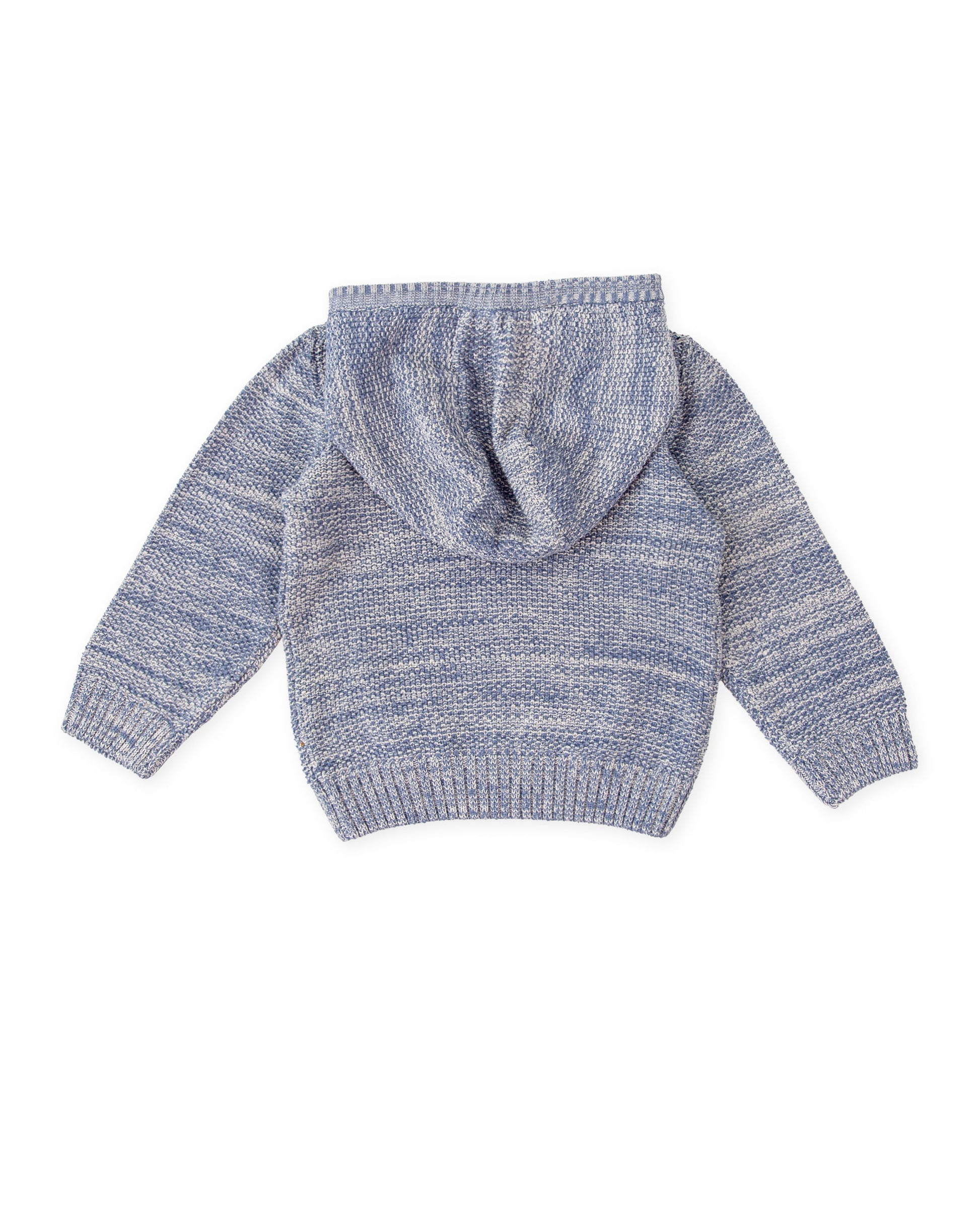 Kids' Cozy Blue Knit Hooded Sweater with Embroidered Detail