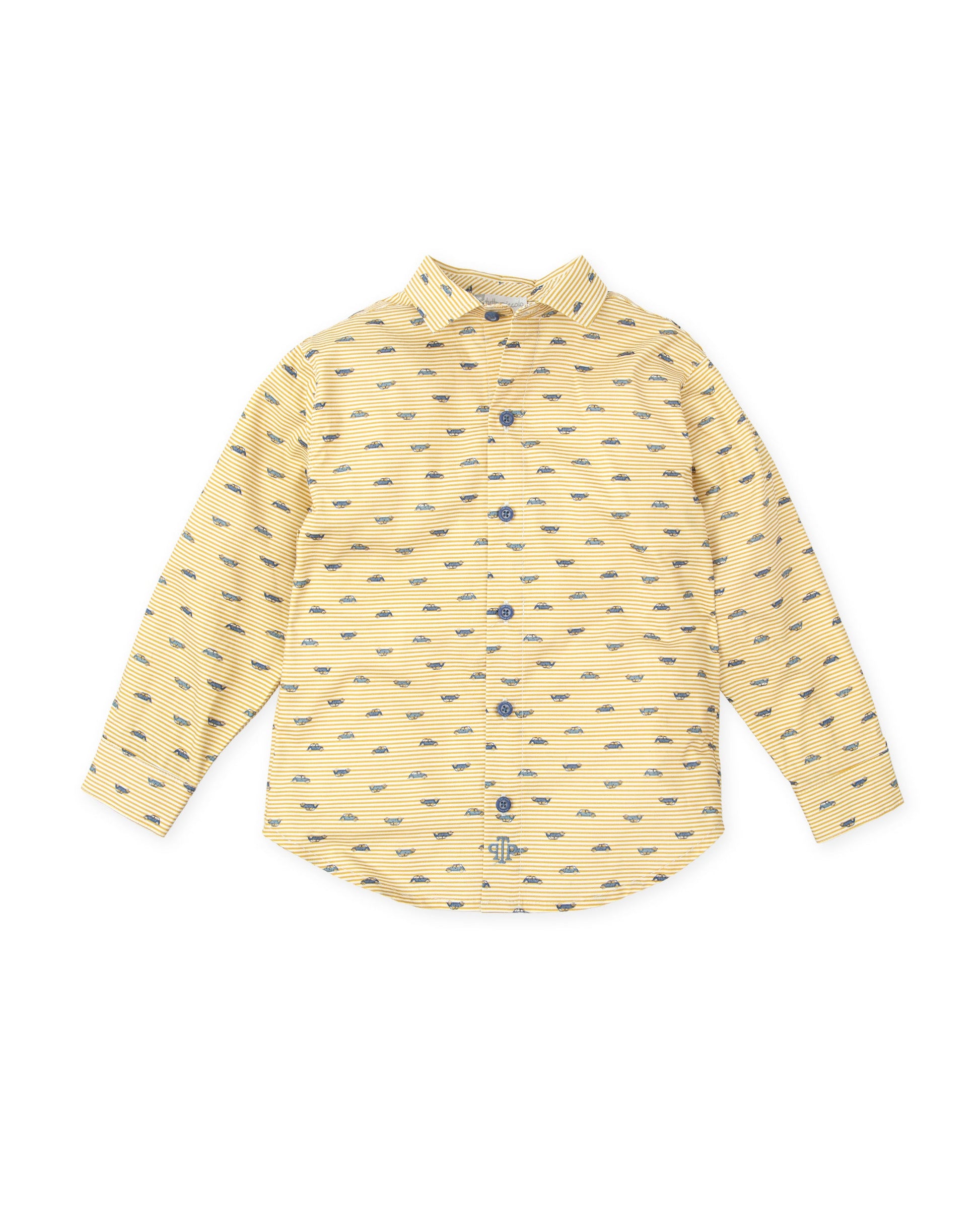Elevate your wardrobe with our Men's Mustard Oxford Shirt, featuring a playful blue car print and exquisite embroidered hem detail. Crafted from 100% cotton, this shirt promises comfort and style for any occasion.