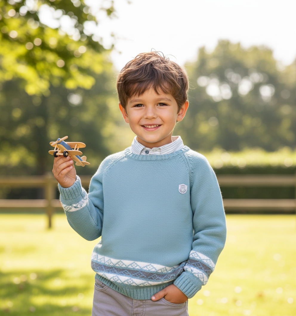 Elevate your wardrobe with our elegant sea green knit sweater, expertly crafted for both style and comfort. This premium sweater features intricate ribbed detailing on the neckline, cuffs, and hem, adding a touch of sophistication to your look. The standout intarsia pattern enhances its visual appeal, making it a must-have for any fashion-forward individual.