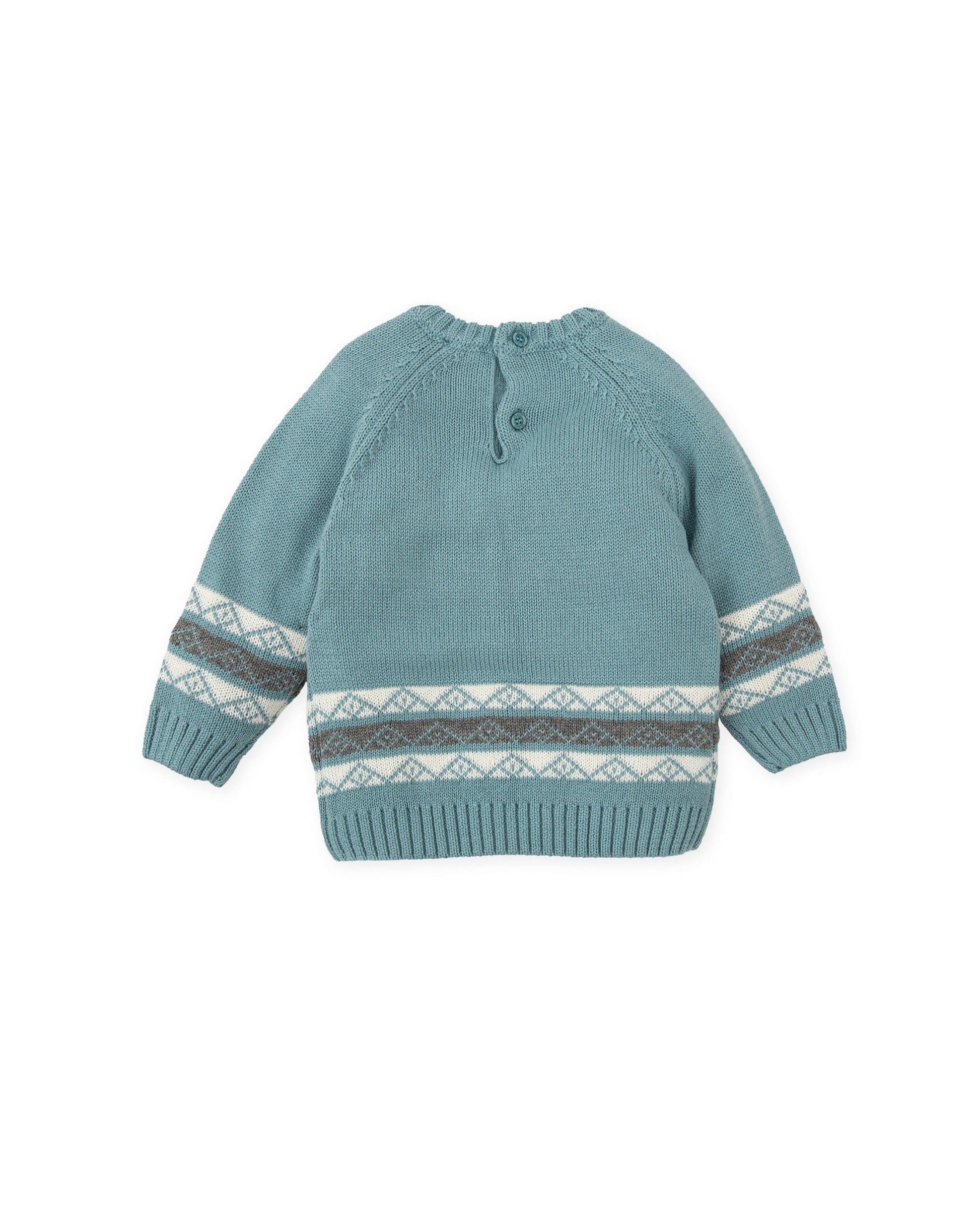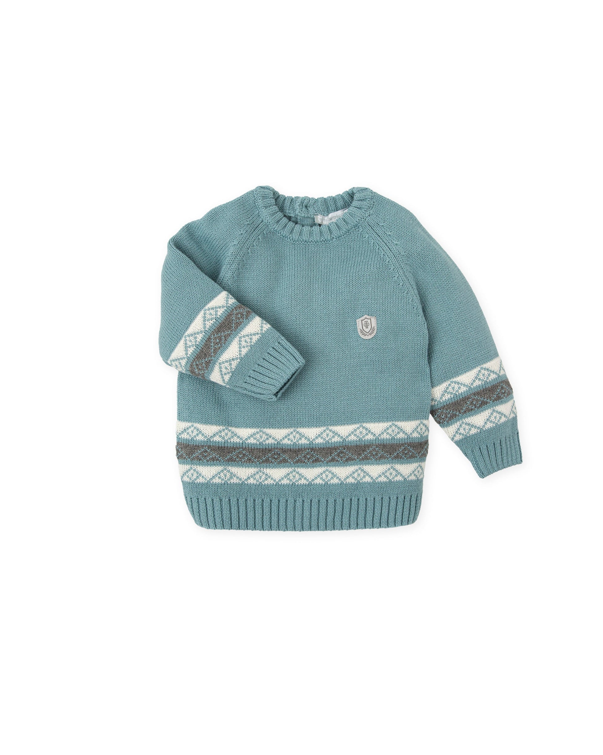 Elegant Sea Green Knit Sweater with Intarsia Pattern