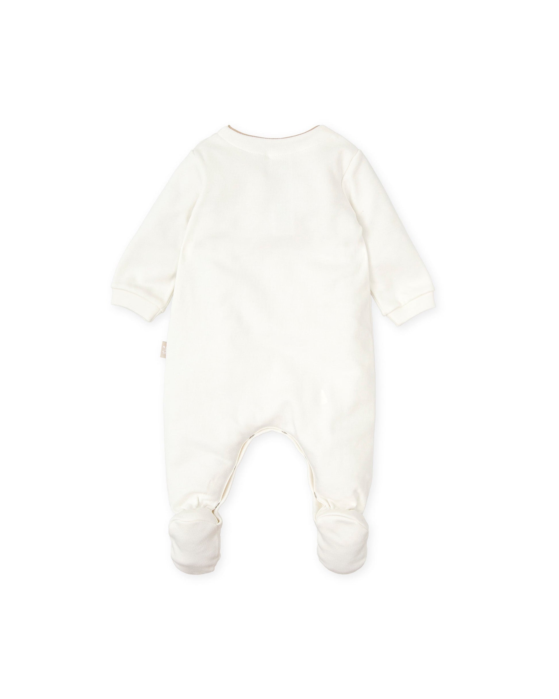 Introducing the Tutto Piccolo Organic Cotton Baby Romper, a delightful choice for your newborn's wardrobe. Crafted from premium off-white interlock fabric, this romper features a charming animal face design, adding a playful touch to your baby's outfit.