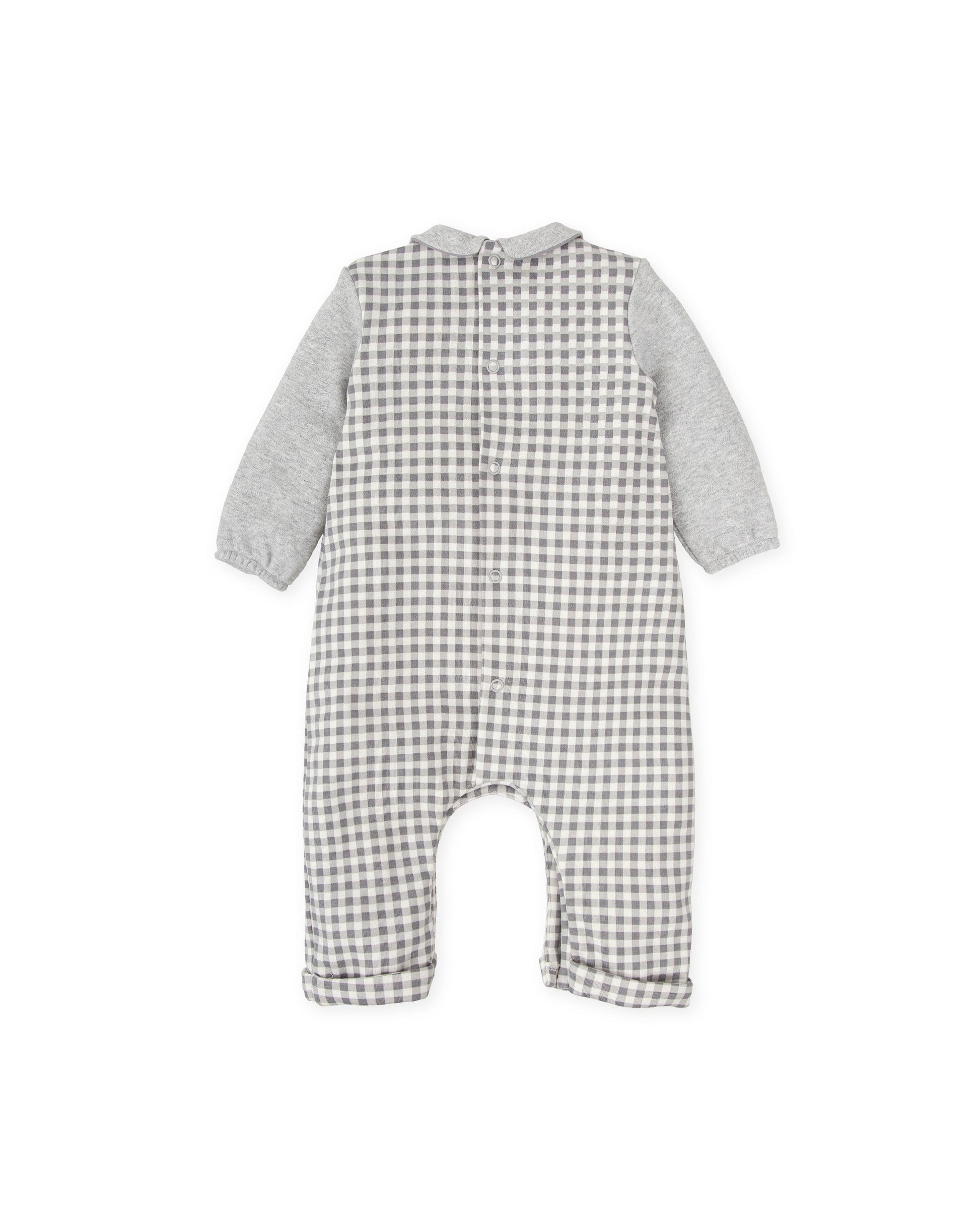 Cozy Gray Gingham Baby Jumpsuit with Sheep Embroidery
