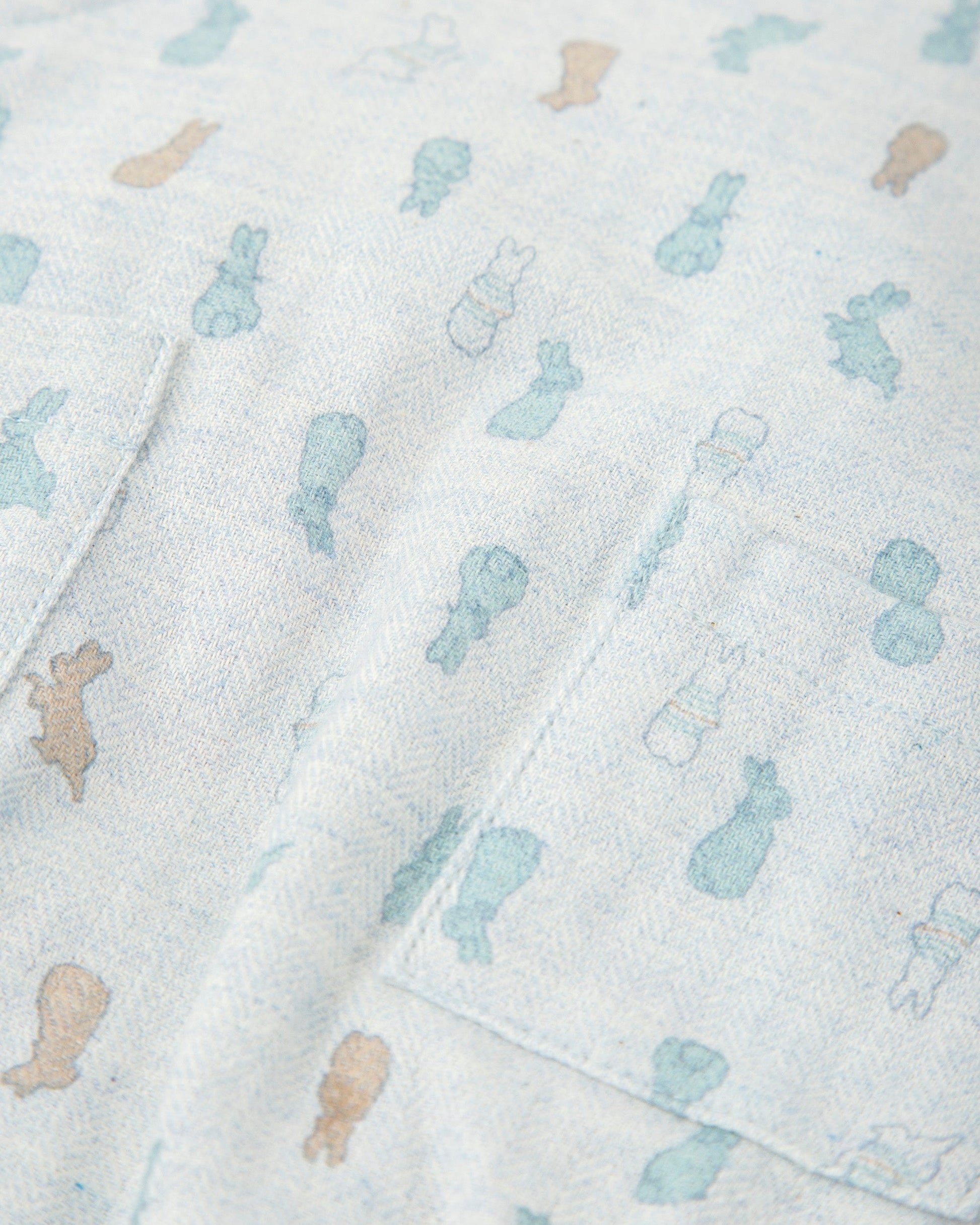 Sky Blue Bunny Print Baby Romper with Easy Diaper Access