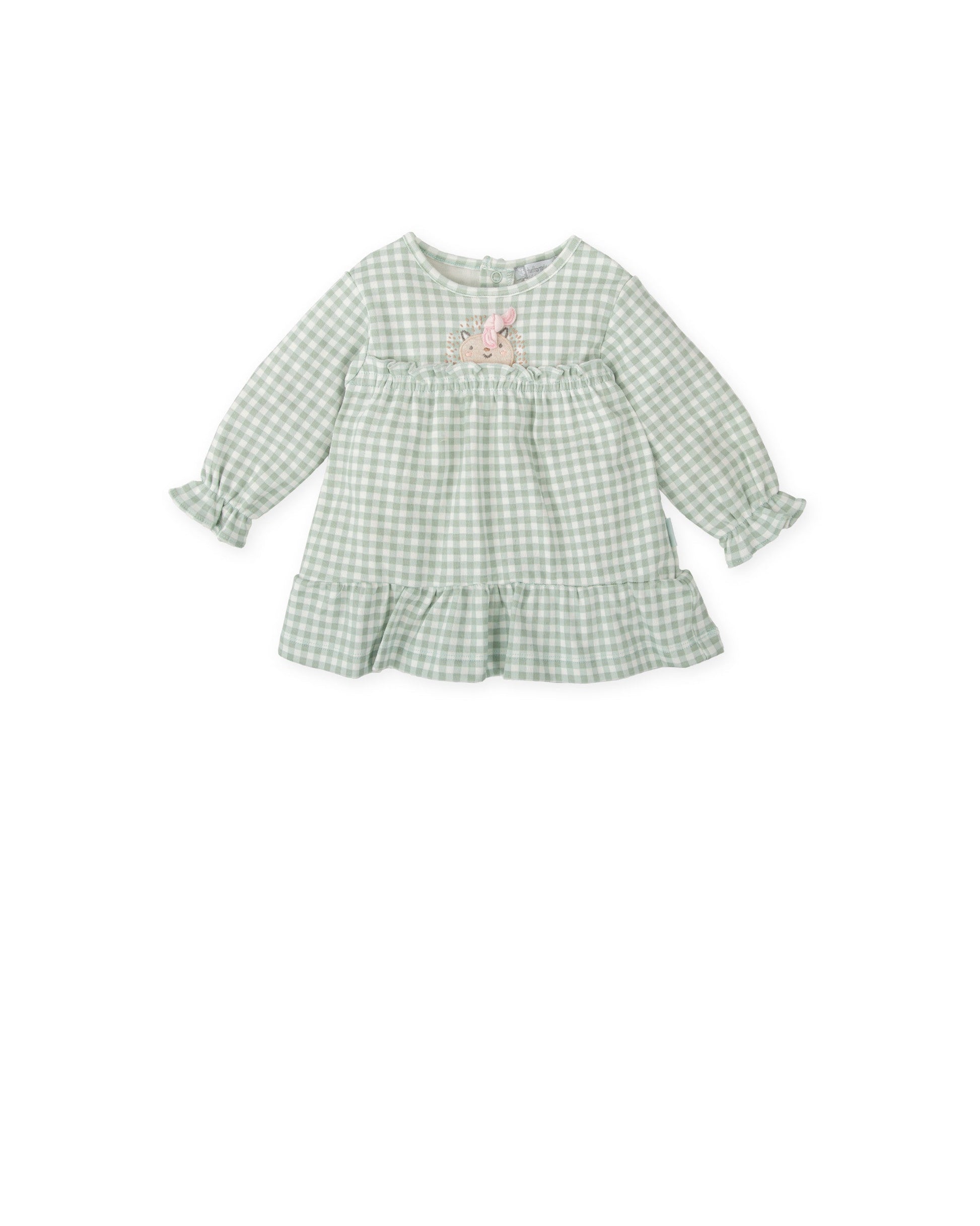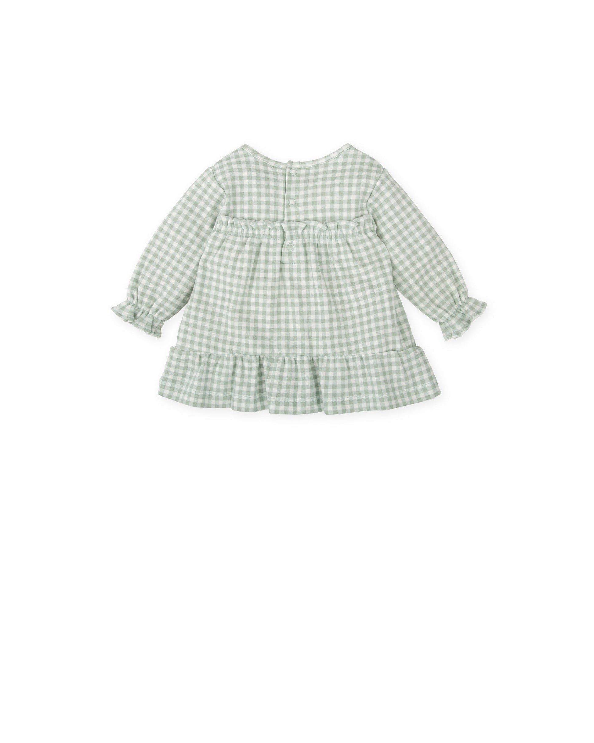 Sage Gingham Baby Dress with Lion Applique - Soft Cotton